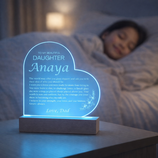 Dad to Daughter Night Light, Personalized Heart Acrylic LED Lamp, Birthday Gift from Father, Custom Keepsake Light