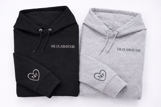 Anniversary Date Custom Embroidered Roman Numeral Hoodie, Initials, Personalized Gift for Couples, Matching His and Hers, Valentines Gift