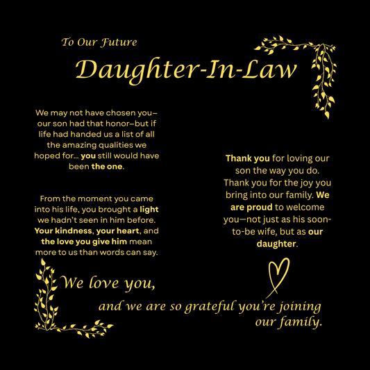 Future Daughter in Law Gift from Parents of Groom, Emotional Message Onyx Card Necklace, Wedding Gift for Future Daughter-in-Law, Engagement Gift